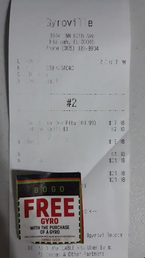 All the 5 star reviews are LEGIT!! I tried this place after passing it a few times. Finally tried it today. First let me say the staff was super friendly. I was greeted with a happy âWelcome â when I walked in. I told the lady behind the counter this was my first time and I hope that the gyro was gonna be good. She promised that it was gonna be good because they make it fresh. She made the gyro putting all the ingredients I requested. It was a nice size gyro. When I got home and bit into it, OMG!! Delicious! Every single bite was delicious. Down to the last bite. I will say 100% this is the best gyro you will have. If youâre in the area, you gotta stop by and try it. GYROVILLE, you have my stamp...