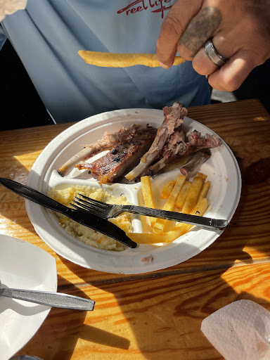 Read moreThis was our first time coming here, the lady in the from was very friendly and kind and once we told her it was our first time there she then told us about the menu and recommended the pulled pork sandwich with slaw, we declined because my husband wanted ribs and brisket. We ordered the 3 meat combo with pulled pork, ribs, and brisket and got baked beans and Mac and cheese as the sides. We paid $37. Our friend got the quarter chicken with slaw and sweet corn nuggets. We all got our food really fast like within 5 minutes of ordering and I could tell by the look on my husbands face, he was disappointed. The portions sizes were small and the ribs were dry, brisket had no flavor but i personally I liked the pulled pork. The Mac and cheese was not good at all. It was seasoned first off and overly seasoned at that. All you could taste was seasoning. When you order baked beans you think like sweet and Smokey baked beans with hints of brown sugar but it was definitely not that at all. The brisket had no Smokey flavor at all. We tired one of the corn nuggets from our friend and I liked the batter used on them gave it a nice hallow crunch but it picked up the flavor of catfish which I’m assuming is fried in the same oil. Personally I don’t think we will be coming back. We paid a lot for small portions and it wasn’t that good. Very...