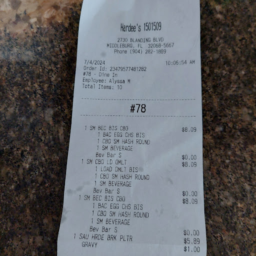 Over the last several years, it has been hit and miss with this Hardeeās. For some reason here lately itās been more miss than anything else. This is why I had to come in and change my review. It was a four star now itās gracefully a one star. I donāt know if itās from lack of sleep lack of enthusiasm for the job or weāll just go with medicated, but some of the employees are like zombies and donāt even make eye contact. Then weāll get into the food. For what you pay you might as well go to a huddle house or waffle House, and have a real sitdown breakfast. Even with coupons ordering off the value menu itās not worth your dollar. I highly recommend that you move on todayās experience again. The lady at the drive-through was like a zombie. Didnāt even make eye contact just stuck my bag out the window and waited for me to grab it, grabbed my drink, stuck it out the window and waited for me to grab it. No straw for my drink at all and then the biscuits were barely even cooked. Not the delicious butter biscuits that youāre used to I will say the gravy was good. And when you think of a super biscuit, you would think super means SUPER. Itās barely even a regular bacon egg and cheese biscuit. Which that biscuit was not cooked all the way either. Then weāll get into the barely warm extremely greasy hashbrowns. Itās sad. I really enjoy Hardeeās, but this place is really going downhill. But by all means Try it for yourself. I just donāt recommend until...