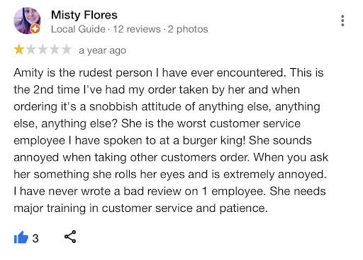 Ā Ā Ā Read moreThis inconsiderate rude person Amity is now working at this location! She either got fired or left Middleburg BurgerKing! I took my mom and my daughter here in the drive thru. She said āwelcome to Hardeeās how can I help youā I said maāam I need a moment please. She did not respond. After gathering the orders I asked maāam Iām ready. No response. I said hello maāam are you there. She said āIām not readyā in the most rude tone. The mixed of me speaking and saying that was extremely rude another lady came on the speaker stating Iām sorry I can take your order. After all said and done. I asked her what her name is and she said Christie. After thought I asked her is the other ladyās name Amity and Iāll be darn if it was her name!! Please consider her position with Hardeeās! Christie apologized for her rudeness. I canāt believe a rude person stuck with me and now is at my favorite fast food place in Middleburg. I quit going to burgerking due to rude self! I refuse to quit going to Hardeeās. There is ALWAYS nice people, hot food, and fast service! I will voice my concern especially when you have the most rudest person in fast food working at your place of business! Something needs to be done about her attitude! Iāve attached my review to BurgerKing Middleburg a year ago for proof of how...