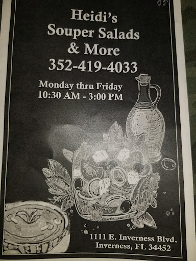 Read moreI asked a few people about where to get a good Greek salad in Inverness and one of the places mentioned was Heidi's Souper Deli just south of the Big Lots Plaza near the pack and ship store. Stopped and picked up one of their Greek salad and I'm so glad Heidi's was recommended. $8.95 for this beautiful, so fresh and loaded Greek salad. They just upped my goal to eat more veggies. Everything was delish and the potato salad was a nice...