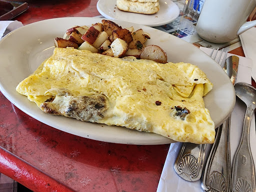 First, let me say this is the first time I have been here I didnât realize they closed at 1:30 and I got here at 1:00 so thatâs on me. My Server was Colleen very nice lady. It took 10 minutes to place my order because she was giving out the checks for customers that were leaving ok on that I was just worried about being able to order and eat and be out by 130 Because I am not a fast eater. I asked Colleen if I would have enough time to order and eat my food since they close at 1:30? She said yes youâll be fine. I said wonderful. I got my food quickly and It was Absolutely delicious..meat lovers omelette hash browns with a side of sausage gravy yummy! Now the reason I gave a four star for the atmosphere is Because there were still people in the restaurant that weâre eating and one of the waitresses, walked past my table, going back to the kitchen and said kind of loudlyâ Itâs almost 130 And we can leaveâ OK, thatâs great to know, but itâs not something that I feel should have been said loud enough for customers to hear it and some customers were looking at their watches and shaking their heads. Then 5 minutes later, a male in the back yells âNo more Ordersâ I looked at my watch. It was 1:20 OK, I get that but you donât have to shout it out so everybody hears it and again customers starts looking at their watches shaking their heads âŚOne of the waitresses said â who died and made him bossâ lol The same waitress who yelled the first time yells from the back and says â ok people itâs 1:30 â so I guess she was in a round about way letting the few of us that were still eating itâs time to finish up so she can get out of here. Ok I understand that too. Sheâs probably has been there since they opened at 7 AM. Iâm just saying sometimes you donât have to yell out things so your customers can hear them and itâs kind of rude..There were no other customers walking in the door wanting to eat And the rest of us were not ordering anymore extras. Will I return yes and hopefully I will get Colleen and I will definitely arrive earlier âŚagain that was on me! What time did I finish pay and leave 1:40. They have a great menu lots of different breakfasts and lunch options to choose from. So they get 5...