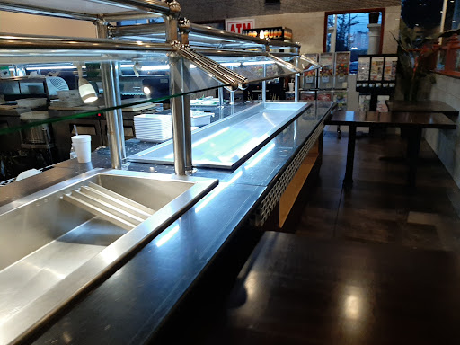 Parking is limited in this strip mall but it was not busy when we visited. The outside is rather austere but the inside is more inviting with a cavernous open room with a fish pond, bar, and booth seating around the perimeter. In the center of the room is the hot and cold bars and hibachi. They also have a party room.