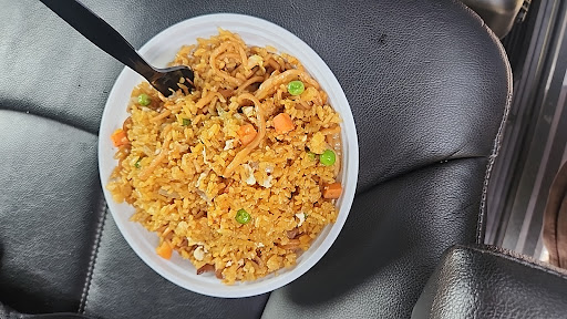 The rice is yellow and bland. It tastes like the yellow saffron rice mix you can get at the grocery store. The food is also the frozen junk you can get at the grocery store. I watched them pull it from the freezer. The General Tso's chicken is weirdly red. Like its covered in sweet and sour sauce. Part of it tasted like dish soap. Covered in dish soap. COVERED IN DISH SOAP. My nephew vomited while we were eating.