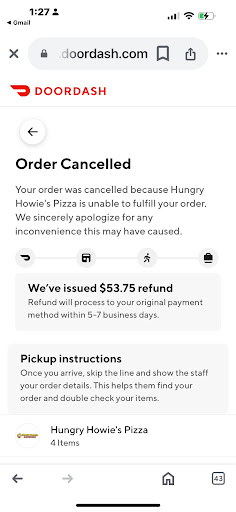 I place my order through DoorDash ,only it was set up for a pick up, so I called hungry Howies pizza to see if they couldn’t deliver it. The young lady working there couldn’t comprehend my question. She kept telling me to call DoorDash and cancel my order and call her and re-order. I told her to never mind. I’ll just pick it up, when I got there, Kaitlyn said DoorDash canceled my order, I said that isn’t true. Why would DoorDash cancel my order? I said you canceled my order because somehow you got your feelings hurt she said no I didn’t. She said I’m the only one working here and I had no way to do that. I can’t cancel the order. I said let me proof of the order cancellation so I know that I’ll get a refund , well the poor thing she goes gets a tablet and shows me she canceled the order. I said you just told on yourself you lied to me and then you showed me that you canceled the order, the email from DoorDash says that the establishment canceled the order , From my experience, somebody that will lie to you right to your face without blinking they also will steal from you. The order was 53 bucks how many $53 orders does she cancel because she gets her feelings hurt She can’t comprehend a simple question . Can’t be good for business ,,you can check my other reviews. Very rarely. Do I give a bad one, I very much appreciate and tip very well someone that waits on me and mine , I would much rather give positive reviews not a fan of negative people , I’ll put you at the top of my prayer list ✌🏾🤷🏽♂️ yeah, this part is in response to the owner. No, I won’t give you another chance. This isn’t a normal reaction. Somebody has some serious...