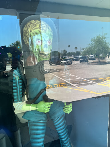 The vibe here is so chill. And the filmmaker-turned-coowner, Joe, is a great guy that really cares about his business. I havenāt gotten to meet Alyssa yet. The place is decorated with all kinds of classic movie references, from the bust of Jaws over the bar, to the life-sized Martian that greets you at the door. Thereās even a poster for a film that Joe directed himself! Ask him about it!