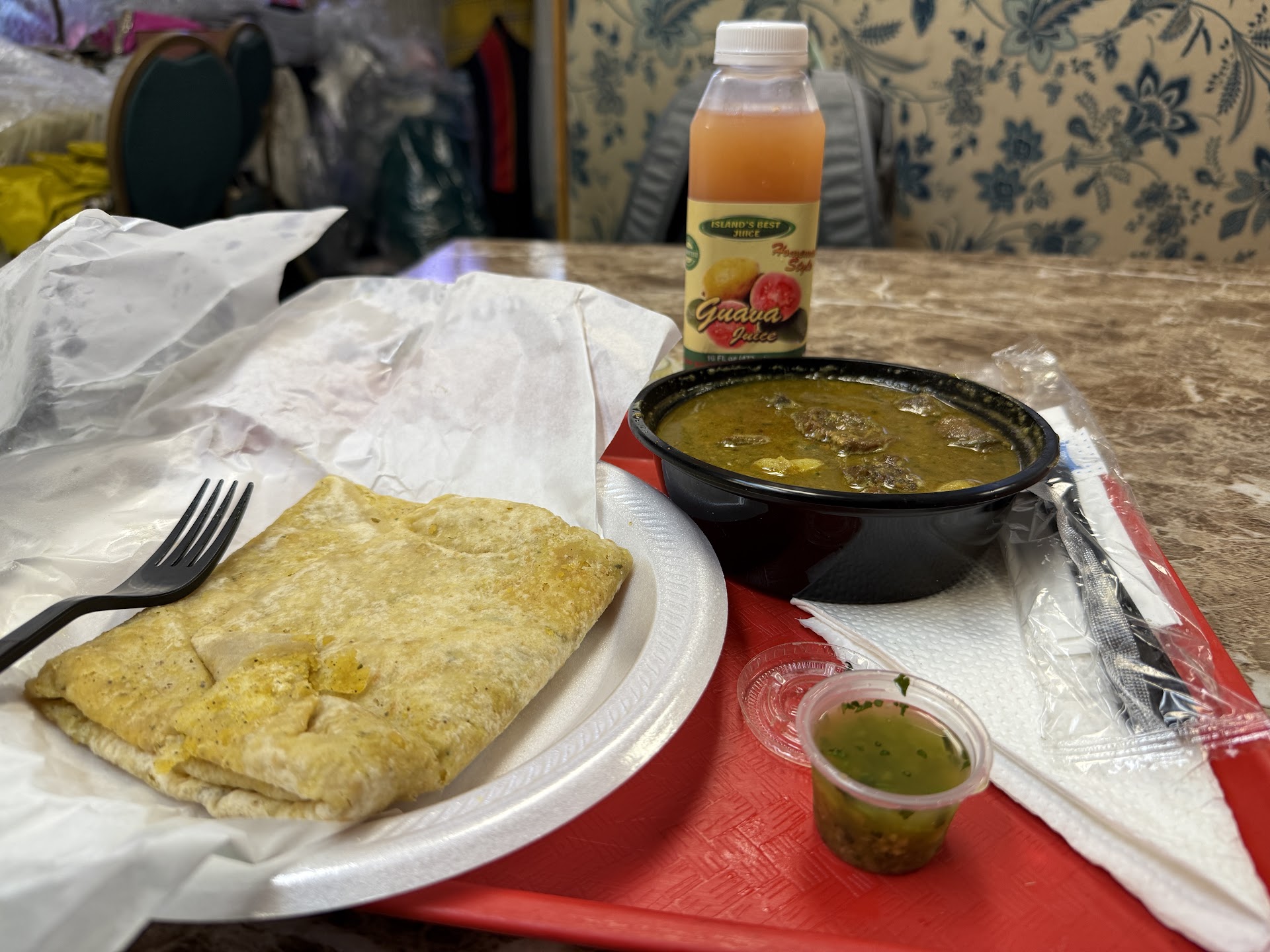 The place reminded me of the hole in the wall restaurants I used to frequent in NYC where you already should know coming into the restaurant what to order and they treat everyone like locals (or in this case, like family). They rib on you and it’s all in good fun. Anyway thanks to the Google reviewers and the owner who hinted at what I should get since I was so indecisive, I got the curry goat. It was SO flavorful and delicious! The homemade dip and sauce they made were perfect.