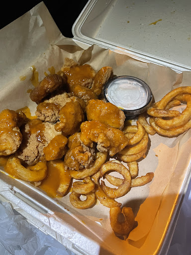 Alright onto the food it self. Even if this was an actual wing place and not just chiliās it deserves the same one star rating. The curly fries were soggy, and that is saying something coming from someone who likes their fries on the chewier side. The chicken was not crispy and some of them seemed like they had been sitting for quite a while. The boneless wings were not even completely covered in sauces(see picture). The sauces themself were nothing to write home about either. The mango habanero was extremely disappointing, a bit spicy and sweet but no real mango taste or tang. The spicy pineapple Teriaki were just a sweet/spicy/soy taste. No real pineapple taste or tang in this one either. Chiliās ranch is pretty decent (i like a thicker ranch so I will give them that)...