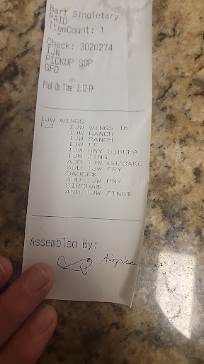 Read moreOrdered wings to go along with extra sauces. You would think with the small sticker on top of the box listing everything and the receipt listing it also it wouldn't be hard to remember everything seeings how someone signed the receipt assuring it was there. We'll that's not the case! Along with once I got the wings home, they were under cooked, and hardly any sauce on them hints why I ordered...