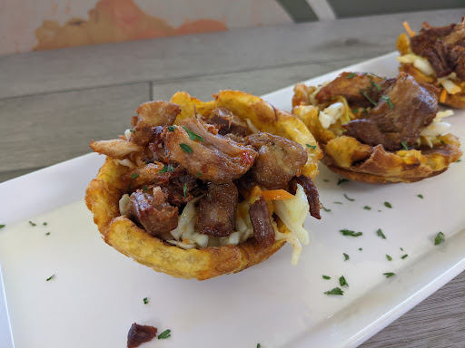 What I tried: Fall-off-the-bone tender stewed chicken — spiced to perfection and served with a medley of lightly carmelised veggies in a rich and complex broth that wouldn't be out of place on a world-class michelin-starred plate. Black bean sauce that is served as an accompaniment to their expertly-cooked white rice. It's rich, peppery, and frankly — tasty enough to drink straight from the spoon as a soup. Stuffed plantain appetizer. Meat and cabbage stuffed crispy-fried bits of heaven. A spicy citrus sauce cuts the fat from the frying oil and the meat and balances the flavors beautifully. I tried pork and the beef version, and have a slight preference for the pork as it was just a bit juicer.