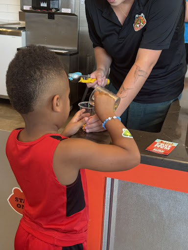 Having a cool treat place in this area is awesome! We stopped in today late afternoon to try it out as we had not before. It was busy but the line went quickly. A few things that need some attention are, since it’s new, have the cashier be helpful when ordering. I felt as if he was annoyed by me being new and not sure how to order. Next, instead of calling out what the person ordered, why not use the number on the receipt or get names. Most people are ordering for their group so have all the orders called together, use a tray or Togo carrier for these orders. Also the lids were not on secure and by the time we drove home, 5 min, there was a mess in my car because the lid was not sealed at all. I recognize it’s new and it’s all teenagers working but a bit of guidance would be a great idea to make sure this place stays open. If not this cute place will not last at all if they continue as is.