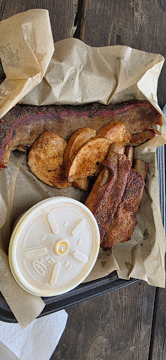Read moreI was going to get half rack of ribs, I discussed and opted to size up to full rack. SO glad I did. It was delicious. Best, most tender rack or ribs that Ive had in years. Smoke was perfect. Tender and falling off the bone. I chose to try both sweet sauce and the spicy sauce and combined they were perfect for me. Either alone would have been good too. I chose to try the corn fritters. Perfect fry on them and the cinnamon and brown sugar butter dip was really good with the fritters.