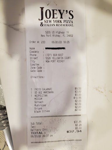 Read moreWe usually order weekly from Slice of Life Pizzeria on Little and Embassy because it's close to home, but our main pizza spot is closed on Sundays. We ordered our pizza and knots from Joey's on Little Road and not only was the girl who helped me absolutely inept at customer service- the food was disgusting. My husband works for a pizza chain for over 13 years now and he told me that he instantly could see and knew that the dough was old, which is why it was hard, crunchy, and honestly disgusting.