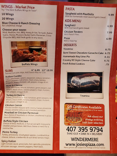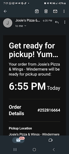 *I did send an email to Josie's Pizza the next day (October22) but have not...