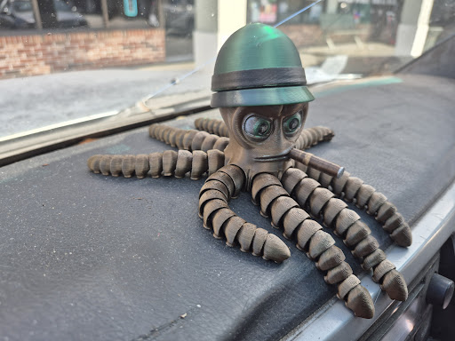 The owner's son was there and he's a great little kid. An artist friend of mine made a 3D printed General Patton octopus and it's been riding around on my dashboard for a while now. When I saw this little kid immediately got the subliminal message that General Patton octopus needed to go live with this young man lol š