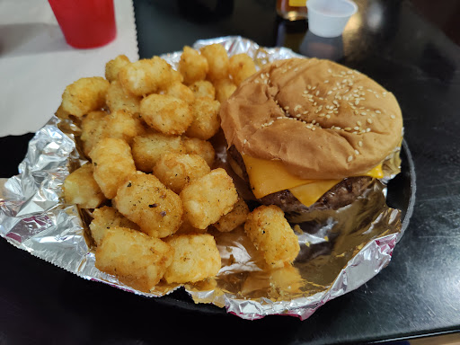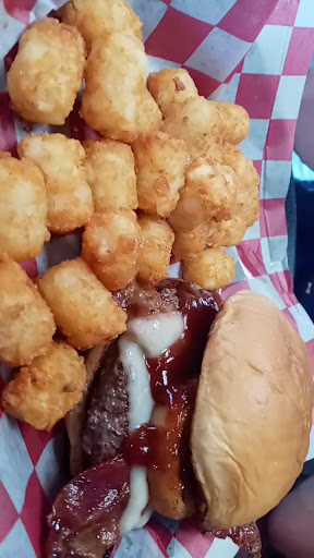 Little bit of a wait for to cook time in order for the food to come out, but then again, this isn't a fast food joint. The wait is worth it though. The food came out piping hot, accompanied by a wonderful smell. The tater tots caught my attention first. They looked golden and crispy with light seasoning. They were in fact very crunchy on the outside, while soft and perfectly cooked on the inside. The seasoning they used complimented the tots quite well, and it was the tot seasoning giving off that wonderful aroma. The burger was cooked medium as requested, served on a toasted bun and topped with two slices of American. I did not really detect any seasoning on the burger itself, but the beef patty had a good flavor that held its own. It was very hot, juicy, and delicious. The portion size was pretty big, too. People with smaller appetites could easily make two full meals out of the order. Throughout my meal, the young lady working there was very attentive, outgoing, and courteous, quickly responding to any requests or questions. Definitely a place to stop in when you find yourself out that...