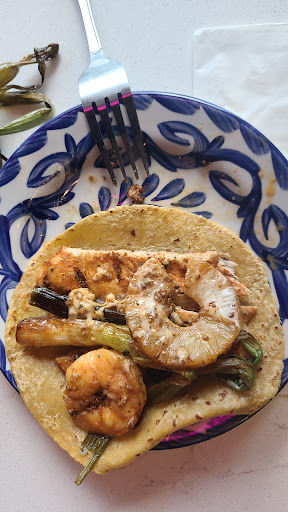 Having all those ingredients mesh together in a stew is a culinary wonder and the communal activity of sharing the bowl makes it great for a date. I put strips of meat, peppers and pineapple on a tortilla and eat them as extra juicy (often messy) tacos. This thing is amazing and I love the way La Santa merges the flavors in their molcajete, which makes for a rich, highly flavorful and filling dish.