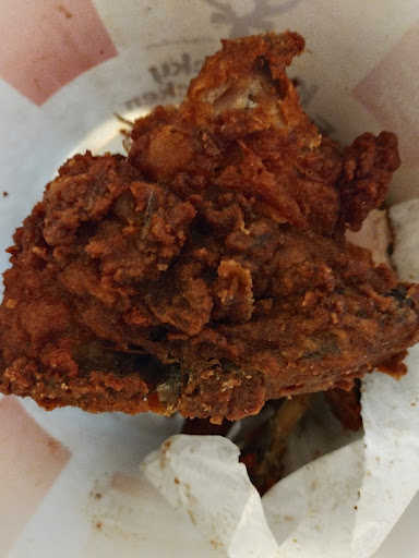 Historically, this location has been consistently INCONSISTENT over the twenty plus years I have been going there. It's just a lousy franchise location that I usually avoid. They were better for a while following their fairly recent, complete remodel, but they have fallen back into old, substandard form. Sometimes they get the chicken right, but USUALLY they don't. They are very close by, I was tired, I was hungry; so I took a chance. I usually go to one of two OTHER locations to get good KFC, since all locations are NOT created equal. Some are better than others. SO, I recommend you go elsewhere and leave this location out of the picture. This was definitely NOT the KFC I expected. I've been loving it since I was a kid, this was absolutely awful, AWFUL chicken. I called the manager and I called corporate offices as well. They need to get their act together. They are definitely not following proper timing procedures for cooking...