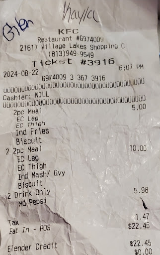Ā Ā Ā Read moreI'm a regular customer that goes to this location atlease twice a week UNTIL I went there yesterday Monday March 31st at lunch time thru drive thru! I ordered my regular Nashville Hot mashed potatoe bowl . The lady that took my order stopped me and said "we don't have that here anymore and I said yes yall do that they made it a couple of days ago for me then there was a long pause then she gets back on and says in a rude vibe...Are you getting a drink? Then I spoke up repeating what I wanted because she doesn't mention anything about the mashed potatoe bowl and as I'm telling her what I wanted she over talked me and said if I want a drink or not in her rude vibe voice. She had no personality and rushed me rudely not letting me speak and order my food or letting me know if she even got what I asked for the first time. I work very hard for my money and I refuse to spend my hard earned money at a place where the staff gives off a rude vibe and over talks me rudely when I was trying to order my food. I don't know where they found that lady at because the staff all there are super sweet especially the 2 older ladies that been working...