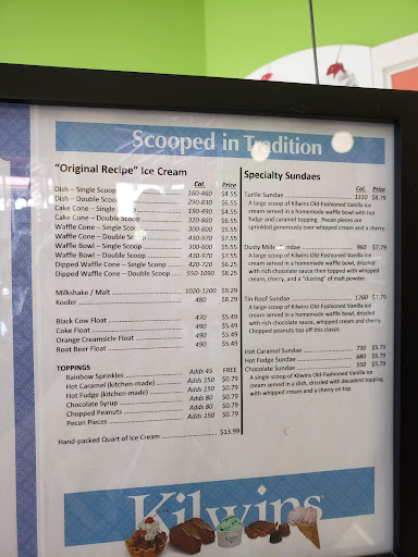 This location normally stocks the Mackinac Island Fudge ice cream manufactured by Kilwins. It is not available at all locations. It is a type of chocolate chip ice cream. The company apparently uses fudge from Mackinac Island, Michigan. The chocolate flavor of the chips is perfect for any taste buds.