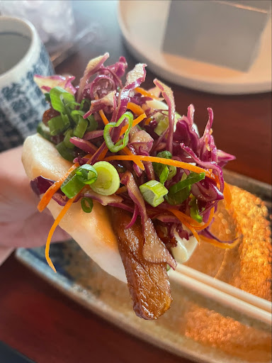 My bf and I ordered the Spicy Tonkotsu Ramen at level 5 spiciness, domburi E katsu chicken curry, pork belly Bao buns, calamari, steamed shrimp shumai, taro boba tea, and Fanta. The spicy tonkotsu ramen wasn’t even remotely spicy if anything it was hella salty and had too much lime which was very odd because there was no lime slice served with the bowl. The domburi E katsu chicken curry needed more salt or something in the curry, instead of the basic curry cube that’s usually used to make that dish, the rest though such as the chicken and other fixings were good/tasty. The pork belly Bao buns were very delicious, it was the one great tasting dishes of the whole meal. The calamari was probably the second best tasting appetizer/meal, the sauces that accompanied it were very tasty as well. The steamed shrimp shumai felt off like something in it gave it some weird bitter taste and it definitely wasn’t the sauce that was served with it because I even tried it without it’s sauce and it was just terrible. The taro boba was really good though it was a small 12 oz amount filled 1/3 with a bunch of ice. The Fanta orange is served in a glass bottle so no refills there. The service from our waitress was great, she was very attentive and she was manning all the three other tables that were also active. The restaurant is located in a suburban plaza in what seemed like not a super popular spot. So I could see and understand that if you wanted a simple Asian fusion dish and this was conveniently located close to you, why this would probably be your choice. The entire meal cost $78 and then plus the tip came to about $94