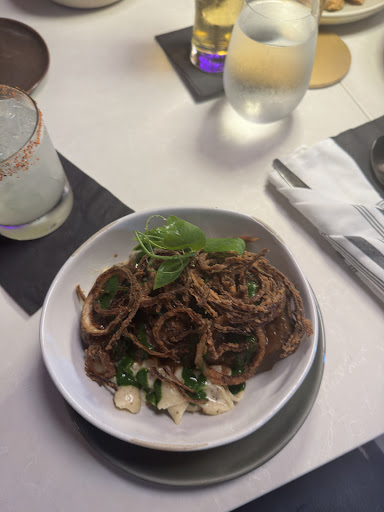 I wanted to give this restaurant a try having seen that it was recently opened. Unfortunately my experience wasnât that great. Firstly, in general the restaurant is a bit noisy. We were seated near the kitchen and where the food was being finalized and run. Our server was very polite but seemed to be more concerned about ensuring that we understood the portion size instead of selling the menĂș items. We ordered the bacon and the shareable octopus appetizer. The bacon was delicious although the bbq sauce was cold on the plate as well as cold on the bacon. I didnât enjoy this dish as I thought the bacon was undercooked for my taste and I wished it was hot. The octopus was on a bed mashed potato that for some reason was extremely sour. It included grilled potatoes and vegetables that seemed odd. The octopus itself was not overcooked. Our entrees were the 24 hour braised short rib and mushroom risotto as well as the pollo asado. Chicken was good but came with an odd basic salad. Short rib was good but may need a bit more salt for my taste. Wish the plate was bigger in size (not necessarily the portion) for ease of eating it. Note that water was spilled on me, the table and my phone by staff while refilling. Someone dropped a rag on my phone and utensils to dry the table. I wasnât sure if they expected me to clean it! Many apologies but not even a courtesy coffee or dessert...