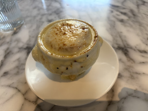 ย ย ย Read moreEvery single item was at least excellent. We started with the cheese puffs, the pate trio, then the bisque, french onion soup, and the escargot as a second course, then got the bouillabaisse, the steak au poivre, one of their daily specials which was a salmon and pasta dish, and the duck leg, before desert of the chocolate mousse, the orange, the creme brulee, and the profiteroles. We ordered most of this all at once, and the waitress automatically started thinking through the best order to present the dishes, ending up moving the escargot starter to the soup course to avoid it overpowering the other starters. The cheese puffs were like a cheddar biscuit on steroids, the pates were all good but the mushroom one was the best, the bisque very much tasted like it had lobster in it, and the escargot were well made and standard. The french onion soup was a notable twist on normal restaurant french onion, as it forgoes the normal overpowering beef and onion broth for a strong but much more balanced beef and onion broth with distinct notes of rosemary and other herbs. All of our mains were very good, but the duck was the best- they advertise it as crispy, and crispy it is. Normally I dislike duck due to the higher fat content, but this was perfectly rendered, and the combination of the duck, potatoes, and grapes worked very well. Of the deserts, the profiteroles were, well, profiteroles, but with ice cream instead of pastry cream and with chocolate sauce. If you like profiteroles you will like this, but nobody in my family really likes profiteroles, so we found it decent, but better than normal profiteroles. The mousse was good but standard. The creme brulee was quite good, you can really taste the lavender. The best desert by far though was the one that mimics an orange, which was so good we ordered a second one. The service was very good, itโs not white linen so donโt expect that, but they could competently give recommendations and wine pairings, and the sommelier was quite good as well, they were very attentive and engaged, and they made sure we were comfortable on the cold porch with blankets and space heaters. Music was present but not overbearing, so the patio at least was good for those of us with sensory...
