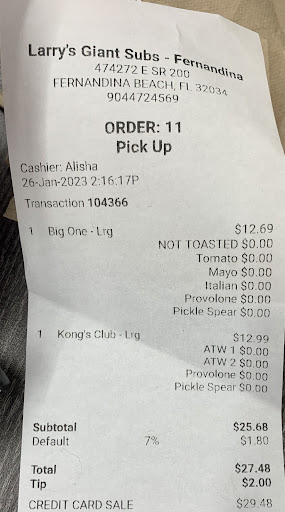 Read moreWhoever was working last night, Monday, 7/31 at 6:30pm, give them a massive raise. I’ve had Larry’s from over 20 locations if not more, I’ve eaten every option on the menu and o constantly praise Larry’s over any sub shop in Florida. For years I’ve said St Simons Larry’s is the best, and I still hold them to high standards, but whoever made my sandwich at the yulee location last night put some love into it. Massive amount of flavor, held up on the toppings, and they close at 7…so usually someone rushes through the close you nah…not this guy. He’s an artist with the lettuce let me tell you. Idk what he did different in the Greek veggie, and maybe I was just hungry or something, but dang that sub hit different. I’m thinking about it still the next day. I’d like to know who made it so I can give them a huge tip or kudos or something. Unfortunately I took it to go so I couldn’t praise the master when I realized I was eating a slice of paradise. But here...
