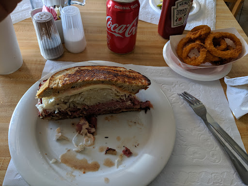 Read moreFirstly! before I say more. the food was good but the place was understaffed and the lady working the counter was overwhelmed with telephone and in-person customer orders and extremely annoyed that the call-in orders had not picked up their food yet and that she was running out of counter space. While ordering the food I felt like I should not give her Specific Instructions as to how I wanted my food prepared so not to further annoy her (HOT corned beef sandwich on rye with mustard, onion and swiss cheese, it came just warm) still tasted good but not what I wanted and I felt it would be a problem to tell her what I wanted or return it to her to be done properly. I had a beer with an ice cold Frosty mug that you could not see through I poured the beer into the glass and drink the beer, when I got to the end of the beer I noticed slivers of Green Glass in the bottom of the mug and when I presented her with what I had found and consumed her response was "Oh looks like a broken Heineken bottle" and she never offered an apology. So needless to say I will never eat there again and if you do,...