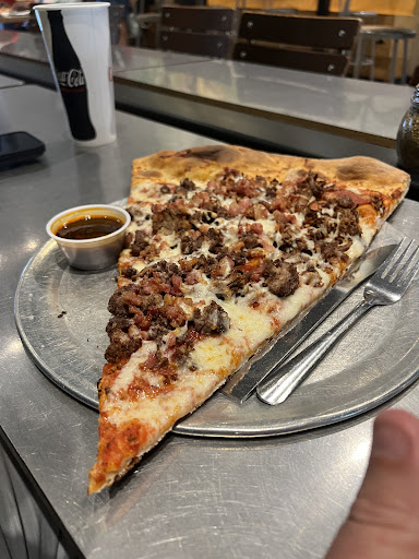 Ā Ā Ā Read moreImma crack the can open here and we spilling THE TEA. My review here is a direct result of the one here before me 4 hours ago. We come here to this location regularly and enjoy the atmosphere and the staff as they are always extremely personable. I decided to try their new Meaty McMeatface slice, which is a red sauce slice with pepperoni, seasoned beef, bacon, and their new Birria Beef (absolutely FIRE). Upon ordering it, the gracious host behind the register asked for me to let them know what I thought because a prior customer ordered the same slice, ate it in its entirety, than demanded a refund or a better slice. Upon offering this disgruntled pizza officiando only a cheese slice to make up for the 97.6577879% eaten slice, they had the audacity to demand another one?!? PISHPOSH!! The below reviewer then waved their āBLOGGERā status at the staff as some sort of culinary-literary weapon at their disposal. NEGATIVE THERE DAISY MAY. Anyway letās get back to the actual meat and notional potatoes, and talk about this new slice. The blend of flavors from the meat toppings is a pleasant herb-filled one. We opted to get a side of the Birria-jus (birria aus jus) just because, and I canāt recommend this more. The red sauce gives a tangy pop to the different cured meats making it a perfectly balanced and overall heavenly experience for your taste buds. Wash it down with an ice cold Pabst and you can thank me later. 12 out of 13.6 stars, two thumbs up.