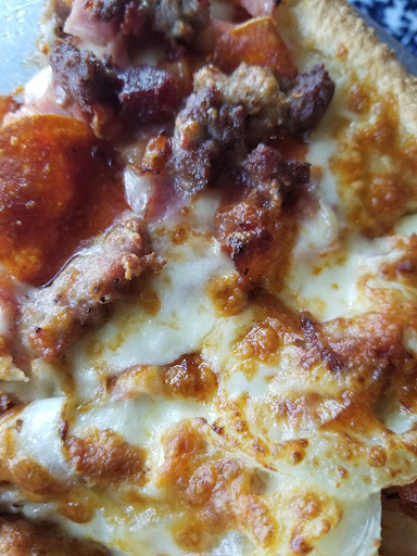 Came in with my grandchildren while visiting the area... There was only one other table being waited on so not busy at all .. the older woman who was the server must had been in a bad mood for no smiles no greeting she gave us menus and walked away before I could say anything.. when she finally returned I ordered quickly for it was apparent she wasn't happy to be working that day.. no small friendly chit chat like the Leonis pizzeria in Naples , and the service there which is order at the front was so much better than here and they wait on you with a smile and friendliness not here.. not today at least .. whoever cooks here needs to take tips from the other pizzeria for it does a 100% better job than here.. we ordered fries and a half bacon half cheese pizza..the bacon was not crispy barely cooked and was inedible the cheese was weird, tasted like it was soured.. I nor my grandsons could eat barely a couple bites.. my stomach was turning after a bite... the fries were slightly cold when they arrived but they were hungry and ate them as they were the only edible item served.. the waitress saw we weren't eating and saw the napkins soaked in grease that we used attempting to help sponge off the super greasy pizza.. bad cheese, hard crust that tasted like a frozen overcooked pre-made crust. just a disappointment..I would not recommend it to anyone.. to bad they weren't half as good as the one on Tamiami in Naples for the experience there was so good compared to here and I just was looking forward to the same experience here...I would not come back and if you care for flavor and not being all night in the bathroom you...
