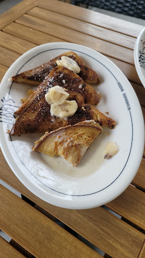 Bananas Foster French Toast: laughable! 4 half slices, literally 6 thin slices of banana, drizzled with canned milk. Completely missing the fosters. No caramel. No flavor.