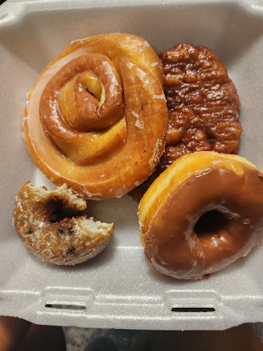 Read moreBy 8:30am, all of the cake doughnuts were gone! ......of the classic plain variety, with or without chocolate, and a cinnamon-sugar-coated, so get there early for those! They still had a few blueberry cake and blueberry iced cake, with a large assortment of yeast doughnuts available. Had to throw in the maple glazed with bacon. The bacon was fresh and fantastic, altogether a little too sweet with the combination of the icing on the donut and the maple frosting, but halfway through, you won't care! They also have kolaches, and gorgeously tanned apple fritters, for the next trip. Pleasant, fast, and happy service on Hwy....