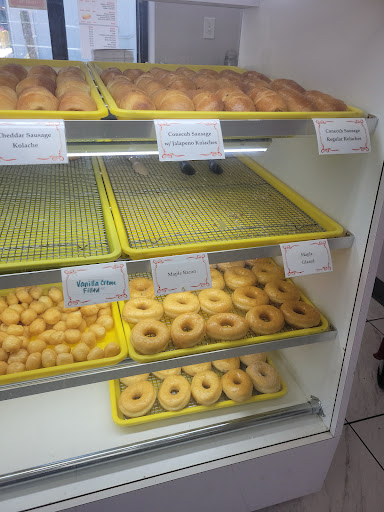 I went to this doughnut shop because I wanted to try something new. Order the kolache and a doughnut the doughnut was OK. The kolache was horrible. I should have known when I asked if it was warm and she proceeded to go to the microwave. But I decided to get it anyway and I should not have I would have been better getting a hot dog on a bun. The meat inside was poor quality in the bread was not hitting on much they need to go back to the drawing boards or order it from a different company.