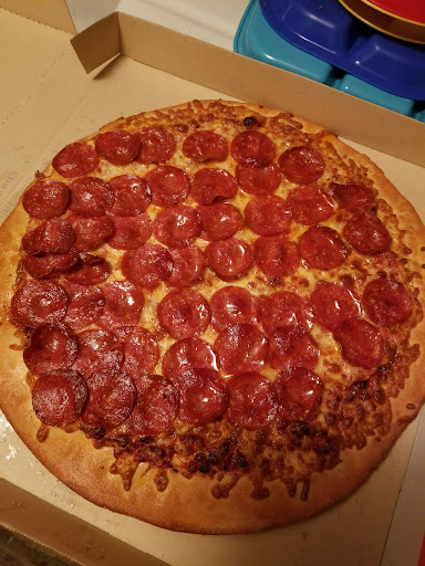 Read moreThe pizza is almost always Great because I always order pizzas that they don't keep in the warming cabinet. So I get my pizza FRESHLY BAKED . But since I found out last time if you want sauce with your cheesy bread it's extra $, & the don't have the cinnamon pullapart anymore either ALL I got was 2 pizzas. . But the young lady that was on the Register must of been New. Cuz when I pulled up I ask how much is a large pan pizza with pepperoni and Sausage. She said let me look so window closes she checked register. Came back with 2 prices 1 for a pepperoni pizza and Another price for a sausage pizza. I listened then again asked how much for a large pepperoni AND Sausage pizza "together on 1 pizza". She goes in to check again. Comes back with an even higher price. Ordered that then me a large pizza with EXTRA Pepperoni well done. (It didn't get cooked extra well done ,JUST DONE ) but I DID check until I got home. It was good just NOT crispy edges like I like it. but I ate it . So...