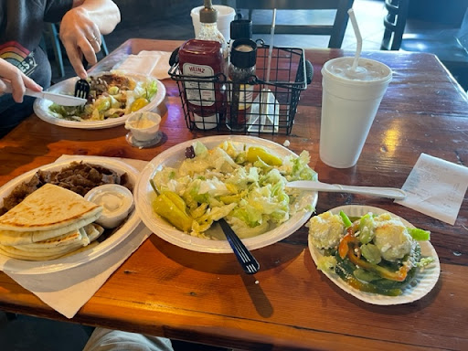 I'm sorry to say this restaurant went downhill so far, it's not worth going ever again. My wife and I went in for lunch on10/16/2022. We looked at the menu and I asked how big the small vs. large salad was. The cashier picked up a to-go box that was clear and a to-go box that was black. They appeared the same size, but we ordered 1 small for my wife and one large for me. She added Chicken and I added gyro meat (on the side). I asked for no peppers, tomatoes or cucumbers and no potato salad on either. We each ordered a drink. The bill was $35.35! I tipped $5.00 so we were in for $40. There were only two people waiting for food and yet it took 18 min. I went to the bathroom to wash my hands and it was filthy. The floors, walls and toilet were soiled. When I walked out to the dining room and looked around (we had plenty of time to sit and stare), I noted all the tables in the restaurant were dirty. Even the one we sat at. The floors were sticky, the employees' shirts and pants were stained with food. Some employees preparing food were not wearing gloves or hats. When the food arrived, our salads were not in the to-go containers we were shown when ordering, they were on plates. Not nearly the same size as the boxes. My salad had lots of peppers and potato salad. I said "This was not supposed to have peppers..." and the girl said, "Oh, well, they don't always read the tickets. Give it back and I'll pull all the peppers off." I said "You're just going to pick through my salad and pull them out with your fingers?" "Yeah." she said. "They're not going to make me a new one, properly?" "Nope" she said again. I told her I would keep it and do it myself. Here is the photo of what I had to dig through to pull them all (or mostly all) out. My wife's chicken was cold, my gyro meat was cold and greasy.