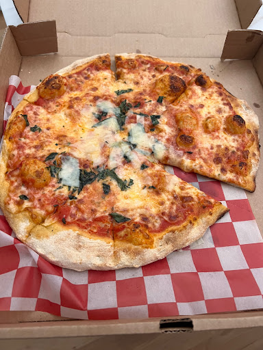 It gives reminiscent vibes of brick oven pizza. Thin dough with a very flavorful, crispy , and airy crust. The pizza flavors are excellent. They have a whole menu for red pizza and a whole menu for white pizza. We tried the margarita and the O.G.BLT. the margarita was fabulous with that unique flavor to it. The accoutrements accompanying the pizza such as the parmesan cheese the red pepper flakes the pepper and the oil were excellent. This is obviously owned by a person who has much experience in legitimate pizza. As far as the white pizza is concerned while it was good I think more ricotta or other types of cheese are needed on a white pizza because of mozzarella base just kind of seems like cheese without sauce. Something else is needed to differentiate a white pizza. Aside from that it was quite good and the ingredients were absolutely high quality.