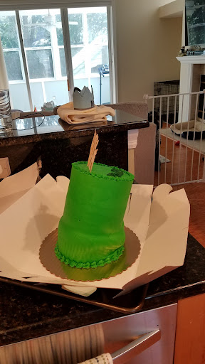On the day of the birthday, my mom went to pick up the cake and it was SO. TALL. It immediately started to topple over before she was able to get out of the store. It didn't even fit in the bakery box they put the cake in, so it was open the entire time my parents transported it the hour drive to our house. Additionally, it was a bright green color that made it look like a leprechaun's St. Patrick's Day hat. They didn't write Happy Birthday on the cake, just my son's name. They didn't event ATTEMPT to put any of the toppers in the cake (most of which were tiny cupcake toppers which would not have overwhelmed the cake). No apology whatsoever from the bakery owner, who made the cake - she just told my mom that she probably transported it incorrectly! My mom told her it was falling apart before she even was able to get in the car.
