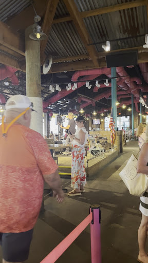 I wish I could rate this 2.5 stars- the atmosphere/location is on point. The area is open, colorful (including the whale paintings on the marina next door) and has decent parking. You are right on the water with a mini beach and live music with one of best gift shops Iâve seen for a restaurant. With just those phenomenal aspects I would rate it a 4âŚ. However, we got there at 6pm on a Tuesday evening and were told 30 to 40 min wait. After waiting a little past an hour we asked how much longer and there were 9 tables still ahead of us and they couldnât guesstimate. We were told to keep waiting or eat at the bar - we had teenagers and didnât want to (even if we did there wasnât space). At an hour and 20 minutes I got in line for the bar to just get water because it was hot and we were really thirsty. While waiting 10 minutes in line at the bar (1 hr 30 min from reservation) the buzzer went off. We were taken to a table by the hostess and at least 8 minutes went by before a waitress came. We asked for waters and tried to order 1/2 lb peel and eat shrimp for an app but they were out. We tried to order fast but had to take longer to pick something else as they were also out of Mahi mahi (why wouldnât anyone say what they are out of when handing out the menus?) The second time we tried to order we were on person #1 and the waitress just walked away from the table to grab a receipt that printed and walk to another table. We were shocked! Once she handed the other table their reciept, she was there several minutes because that table was not happy about one of their meals. The waitress came back over to our table to continue the ordering process, we asked for waters again (we were all basically empty). Another 12 minutes had passed and still no waitress or water so I snagged a waiter walking by, he went to find said waitress. 10 min after that we got a refill but only half way because she ran out of water from her pitcher. We finally got our food (8:40 pm) and tried to eat quick. The grouper was too salty to eat, the fries were limp noodle/not warm, the grilled shrimp was crunchy and dry and the cole slaw was like soup. We left at 9 pm. 3 hours later, hot, sweaty, thirsty, hungry and VERY FRUSTRATED. We just wanted to leave. Our last evening of vacation we were so excited to experience dinner on the beach with a view of the water turned into a miserable disaster. Had it not have been the talented live singer with great song choice and the fact that it got late and we were hungry, we would have just walked out. No manager in site, no one walking around to ask customers how things are going or how their food is. Some tables are picnic tables and a group of 12 was put there and that looked uncomfortable! That group asked our waitress when she was at our table for chairs to put at the ends because they couldnât move their elbows and one dude could only fit one cheek on the seat. Some people were tired of waiting and just asked to be served their food sitting on the beach. (No chairs left as everything was taken). Too much need for improvement to ever go back. I didnât get a picture of all of our meals because my family was too hungry and irritated at that point. Pricing is too expensive for what you get. Note to chefs you donât need the much salt and seasoning if you...