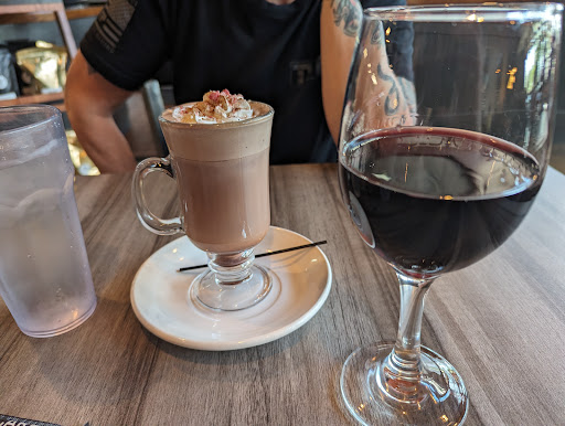 Our beverages were served promptly and I had a nice Merlot, and she had a Peppermint hot Chocolate.
