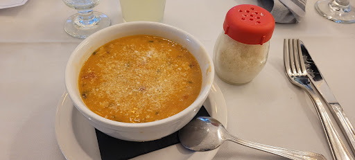 It wasn't super busy but starting to fill up. They had a couple of small parties, we were seated next to one. We were greeted by a nice waiter, to took our drink orders right away and appetizer order. Came back with bread and drinks and took our dinner orders.