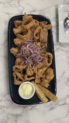 I opted for the arroz con mariscos, hoping for an authentic taste but instead found it bland and lacking any true Peruvian flair. While there was a generous amount of seafood, the flavors were uninspired. My husband’s pescado a lo macho had a peculiar milk or cheese undertone, and the fish might have been frozen. The rice was practically hard and seemed like it was scraped from the bottom of the pot.