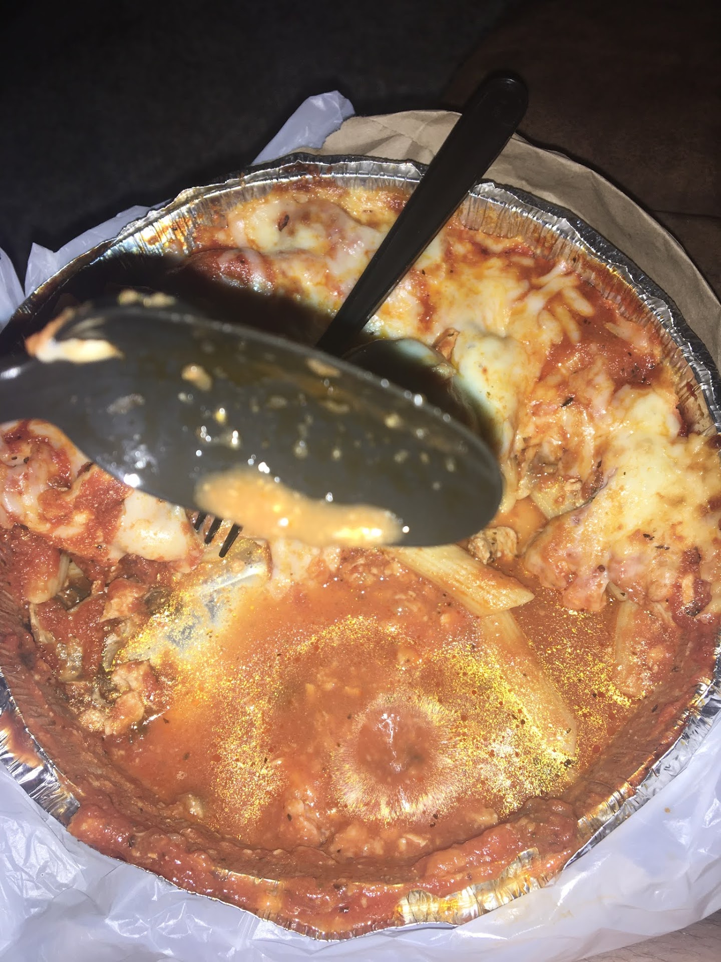 Iāve always wanted to try Mario the baker food but always ordered from my usual - Sals. But when late night hunger took over I decided to try this place out on Uber eats. First impressions actually really good,.. food was hot, fresh and big portions, and garlic rolls were drowning in garlic butter. Yum. I bit into a roll ... and , oh no......too much garlic šš© butter, yes! Delicious, but the garlic, was too much. I didnāt know there was such a thing, but boy that garlic cleared out my sinuses. Phew! A Little disappointment. Oh well onto the baked ziti. looks delicious. Melted cheese, two big meatballs in the middle. I break the cheese with my fork, take a bite,, cheese is good! Get into the pasta and realize itās swimming in a watery sauce that honestly wasnāt nothing to talk about. Hardly what Iād expect for baked pasta, I wouldnāt even expect so much sauce in a regular bowl of pasta let alone a baked ziti. The meatballs, taste bland. They have some seasoning in them, but they are pale in color instead of being browned from being ābakedā in the oven, they resemble something more like boiled meatballs, which thinking of all the sauce they were swimming in, might have actually been how they were cooked. Half way through it and thereās about 3/4 cup of watery sauce at the bottom. Overall a big disappointment, wish Iād just grabbed some penne and Prego sauce out of the cupboard and thrown it together myself for $2, cause honestly I wouldnāt have been able to taste the difference in flavor and would have felt more satisfied.