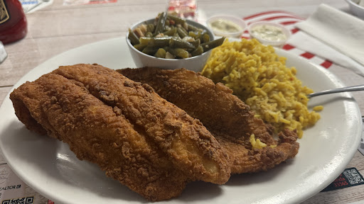 Homey old school locals diner focused on homestyle cooking. I just a delicious burger with Swiss cheese and mushrooms. I had to try the onion rings and was not disappointing. They lived up to all the hype of crunchy tasty real hand made dipped onion Rings. YUM. Service was very attentive and got that extra sweet tea but not one that was over powered sugar. Next visit to try breakfast as that seems to be the best here.
