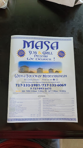 Read moreReally enjoyed eating in at Masa Sub & Grill this evening with my daughter. It was our first time trying this place and we were immediately struck with the cleanliness, cheerful staff and we were seated right away. The interior is newly renovated, brightly lit and inviting. Noise level was perfect for being able to carry a conversation without having to shout over restaurant noise or music. Upon sitting down and opening the menu, I was impressed with the plethora of offerings, there is literally something for everyone here. It was difficult to make a decision but when we saw the Mediterranean Pesto Delight Pizza on their list of special pizzas we both knew “that’s it!” A ricotta cheese blend with fresh garlic, red onion, heart of artichoke and drizzled with pesto, this sounded like a celebration for the taste buds. When it was brought to our table, the sight alone was a feast for the eyes and we knew it wasn’t going to disappoint! Wow! THIS IS THE PIZZA I’VE BEEN LOOKING FOR. The crust was outstanding and very reminiscent of Detroit-style pizza with cheese baked on the crust. The flavor epic. Our waitress was friendly, attentive and helpful. We learned they deliver in a 5-mile radius but the food and atmosphere was so wonderful we’ll definitely be back. ...