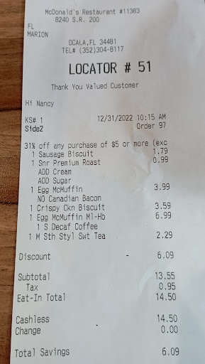 Read moreThey are charging for sugar now? I asked for a large iced coffee with cream and sugar. I noticed that they added on a charge for "liquid sugar". Are you kidding me? When I questioned it, the cashier said I must've asked for liquid sugar and that she would remove the extra charge. I never even heard of such a thing. After getting my coffee, I grabbed the receipt from my previous coffee that was still in my cup holder. Sure enough, they had charged me for it on my previous visit. This is a prime example of how companies slip in extra charges that go unnoticed. C'mon McDonald's, are you really that desperate? Dunkin is right down the street. They don't charge for sugar, they are friendlier there, and they don't try to nickel and dime their customers. They also stir the coffee so it's mixed and I don't have to risk having it leak all over as I shake it to mix it, unlike McDonalds. Liquid sugar. So regular sugar is free, but once liquefied (read-add water to it) it costs extra. I don't patronize businesses with unscrupulous business practices. I later went to another McDonald's across town and they also tried to charge me extra for liquid sugar, even though I specifically asked for SUGAR, not LIQUID SUGAR. Seems like all McDonald restaurants...