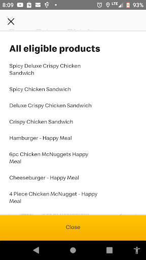 Read moreI had used the app to order the Daily Deal consisting of the Happy Meal included with the purchase of ANY Crispy Chicken (this was clearly stated in the app) and I was given a 4-digit drive thru code and was told that this could not be used with a mobile order and that I would have to use it at the drive thru. No problem.