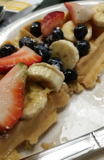 When we arrived, the place was busy enough to have a wait to be seated and it was really loud in there. All of that made me initially regret going there, but we stayed because my family needed to eat. I'm glad we stayed because the hostess, our server, the manager, and everyone else we saw buzzing around was friendly and welcoming. We ordered a couple fish & chips- one with a side of mashed potatoes and veggies. The fish and tarter sauce were delicious! Possibly the most flavorful I'd ever had. The fries, mashed potatoes, and veggies were all flavorful, as well. We opted to pack up some of our lunch and share a waffle for dessert because, well, WAFFLES! And we were just as pleased with that treat.