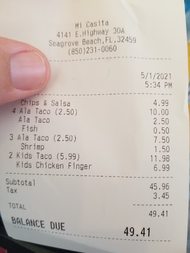 Read moreThink twice about eating at Mi Casa ! Obviously with 4.3 stars and great reviews , we decided to try mi casa ! 4.3 stars had to be before this establishment was taken over by new owners ! Service was horrible the rudest staff ever ! I've never been treated so poorly in my life ! I've never had anyone throw hot sauce across the table ! There was hair in Tortillas ! When we asked for more tortillas they made us pay for them and they gave us corn tortillas after we asked for flour ! They told us to get up and get our own drinks , which would have been fine , but we were not given any cups to get our drinks ! This is the first review I've ever given poor ratings ! This was the worst experience we have had at watercolor ! If you want good service and a quick meal I recommend anywhere but this establishment ! The pictures on the website of this establishment are old this place looks nothing like...