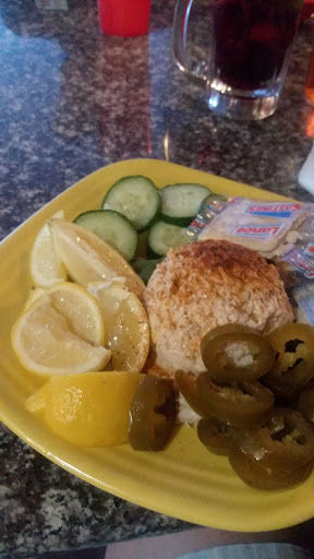 The prime rib looked paetable a couple folks had no trouble enjoying that. Overall, this place is crazy busy all the time, parking is a problem the outside with live music is cramped and crowded. Happy hour gets you 1/2 price drinks.